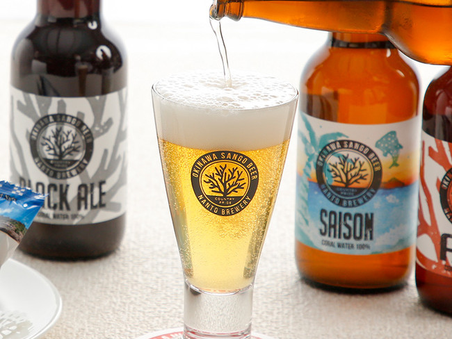 南都酒造所が手掛ける「OKINAWA SANGO BEER」は、ビールの主要な素材である「水」にこだわり、南都酒造所の敷地内にあるサンゴ礁から生まれた鍾乳洞「玉泉洞」の地下100メートルから汲み上げたカルシウムとミネラル豊富な「コーラルウォーター」を100%使用しています。麦芽100%と生きた酵母の旨味に加え、ホップを贅沢に使用した風味豊かな高品質ビールです。