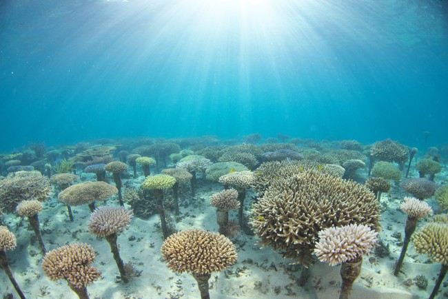 当リゾート敷地内にある万座ビーチは、遠浅の美しいサンゴ礁が広がっております。しかし、1996年にはオニヒトデが大発生し、1998年に起こった世界的な海水温上昇で、万座沖のサンゴも大きな打撃を受けました。この現状を打破するために、村や恩納村漁協による様々なプロジェクトが進められ、2010年以降はゆるやかに回復しています。