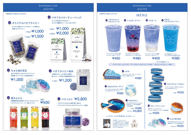 Butterflypea Cafe AOIYOでは7月1日~8月1日の開催期間中、以下のメニューを販売します。