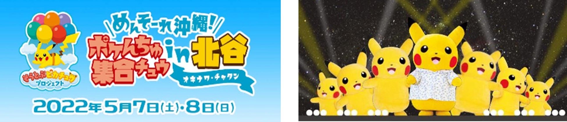 “そらとぶピカチュウプロジェクト”新たな取り組みとして、沖縄県の北谷町で「めんそーれ沖縄!ポケんちゅ集合チュウ in 北谷」を5月7日(土)・8日(日)に開催いたします。キュートなピカチュウたちがリズムに合わせて行進するピカチュウパレードやピカチュウとHYとのライブショー、さまざまなポケモンのフォトジェニックな装飾と写真が撮れるPOKEGENIC(ポケジェニック)など、みなさまにお楽しみいただけるイベントを予定しております。