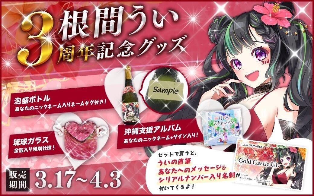 根間うい3周年を記念した限定グッズの発売が決定!期間限定販売となっております。
