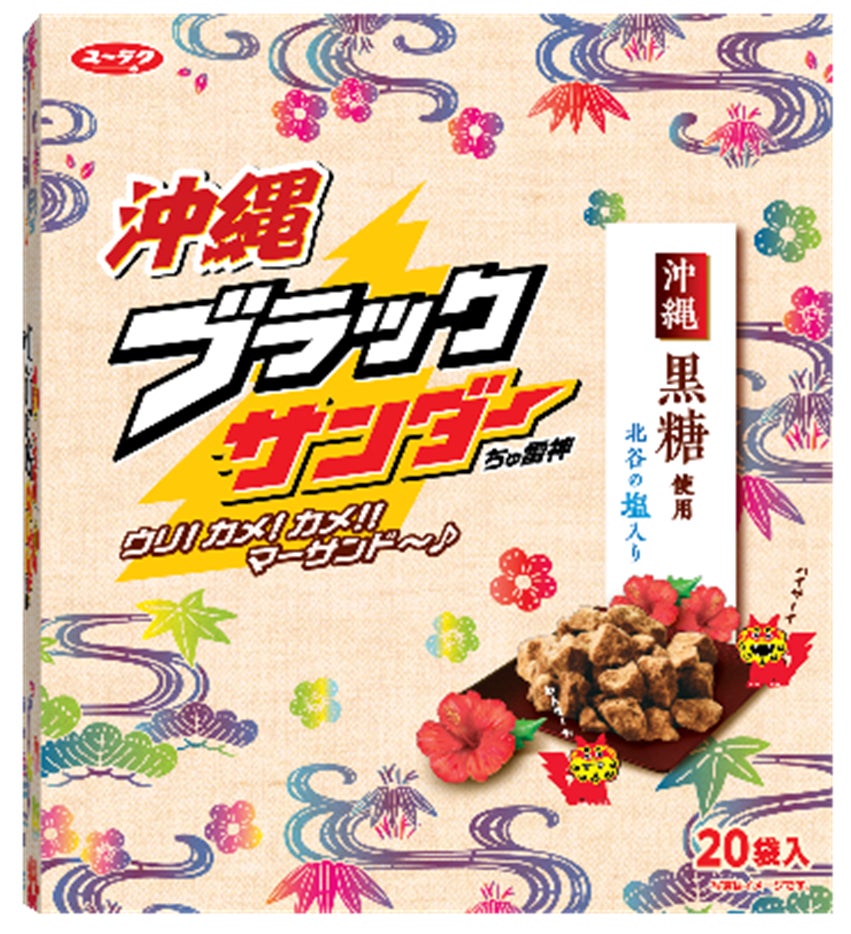 沖縄県特産「沖縄黒糖」と「北谷の塩」を使用したブラックサンダー!パッケージは沖縄伝統の染物技法「紅型」をイメージしたデザインに