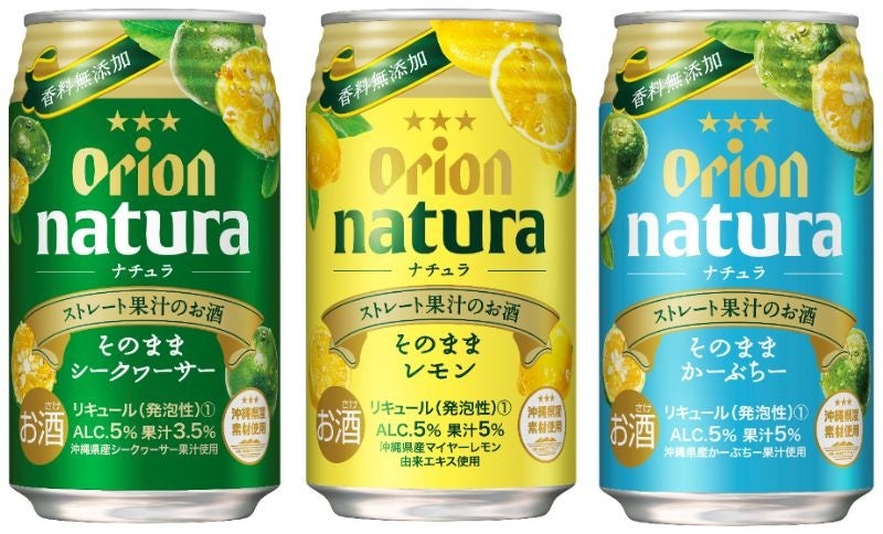 オリオンビール株式会社は、2022年7月26日(火)に「natura そのままシークヮーサー」「natura そのままレモン」「natura そのままかーぶちー」を新発売します。