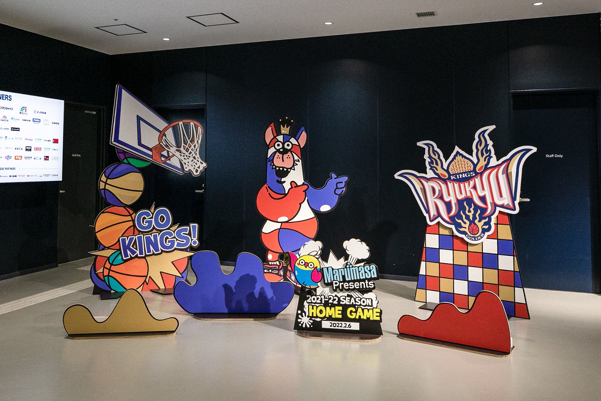 アリーナ内にゴーディーフォトスポットが登場!ゴーディーはもちろん、かわいくポップにデザインされたキングスロゴやバスケットゴールに囲まれて撮影する写真は、SNSへの投稿にもぴったりの1枚となること間違いなし。GORDY DAY RETURNSを楽しんでいる様子を「#琉球ゴールデンキングス」をつけてSNSに投稿しましょう!