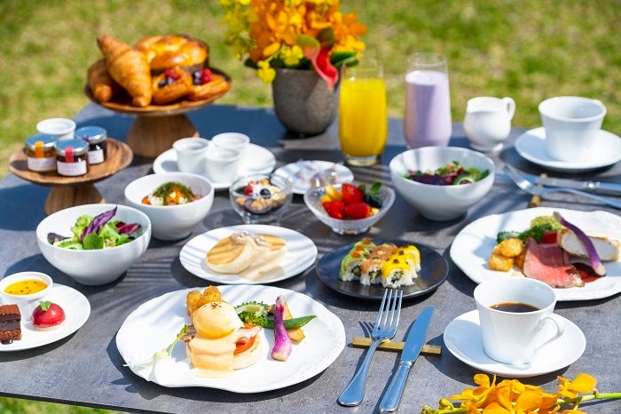 ウィークエンドブランチは、ハワイアンロール、ハワイアンソルトで味付けをしたローストビーフやサイミンなど、多彩なメニューをブッフェスタイルで提供します。