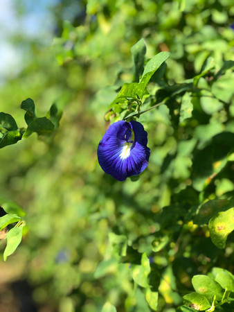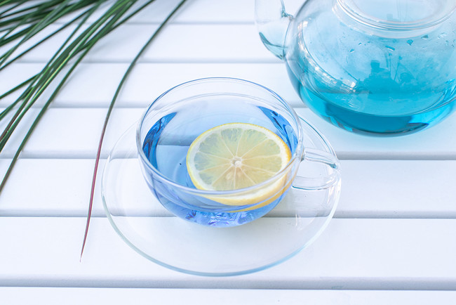 年間を通して咲くその青い花が蝶の形に似ていることから、「バタフライピー」と呼ばれ、和名を「蝶豆(チョウマメ)」といいます。バタフライピーには抗酸化物質ポリフェノール「アントシアニ ン」が多く含まれており、その高い抗酸化作用からアンチエイジング効果が期待されています。この他 にも、血液循環を向上させる機能により、眼精疲労の予防や、メタボリックシンドロームの予防効果が 注目されています。花弁から抽出されるバタフライピー液は神秘的な蒼色をしており、レモンなどの 酸性と混ざることで魔法のように紫色に変化します。