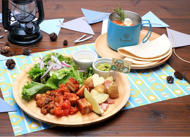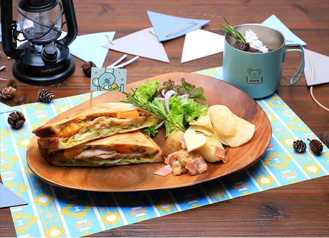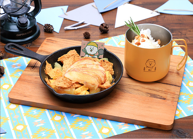 第9弾第2幕のコンセプトは「Relaxing Holiday」。キャンプやグランピングなどアウトドアで食べるようなメニューをセレクトしました。スペシャル企画として、オリジナルアートでキャラクターがおいしそうに食べているフードも取り入れているので、チョイス次第ではキャラクターと一緒にお食事が楽しめます。また、セレクトメニューとして、可愛いスーベニアカップを使用したスープやデザートをご用意いたしました。また、フルーツと涼しげなミントを使った爽やかな香りのドリンクなど、見た目も可愛いSNS映えするメニューの数々の他、カフェオリジナル商品や特典なども登場します。