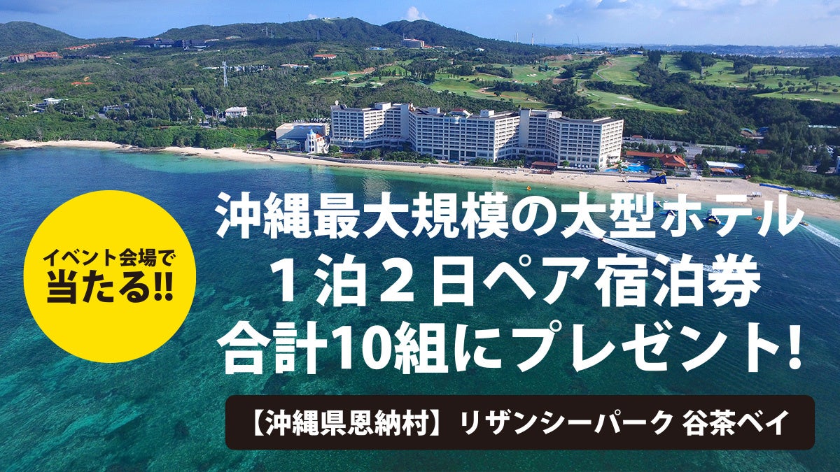 東京・大阪・沖縄の各会場のイベントステージにご参加の方々の中から、沖縄県最大級規模のリゾートホテル「リザンシーパークホテル谷茶ベイ」の1泊2日宿泊券をペア10組にプレゼント!