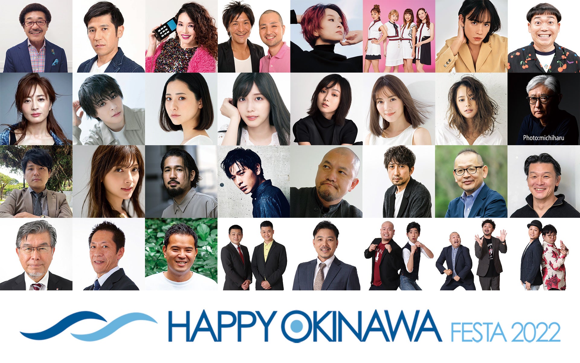 イベントでは、40名の多彩な豪華ゲスト陣が沖縄の魅力とこれからの未来を語るスペシャルプログラムが展開されます。また、来場者には沖縄のリゾートホテルペア宿泊券が10組に当たる抽選会や、HAPPY OKINAWAオリジナルうちわ、パートナー企業であるオリオンビール、ブルーシールアイス、メガネ1番からのうれしいプレゼントもご用意しています。みなさまお誘い合わせの上、ぜひご来場ください。