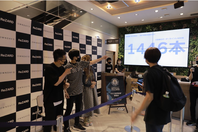 このたび、OWNDAYSとYouTuberのヒカルがタッグを組み、ヒカルがプロデュースするメガネ「ReZARD×OWNDAYS」を立ち上げ、その販売本数をギネス世界記録として登録するという一大プロジェクトを実施しました。本チャレンジは、感染症対策を徹底し、OWNDAYS のフラッグシップショップである心斎橋店で開催されました。記録挑戦のリミットである8時間で合計1547本のメガネを販売し、世界一売れたメガネとしてギネス世界記録に認定されました。