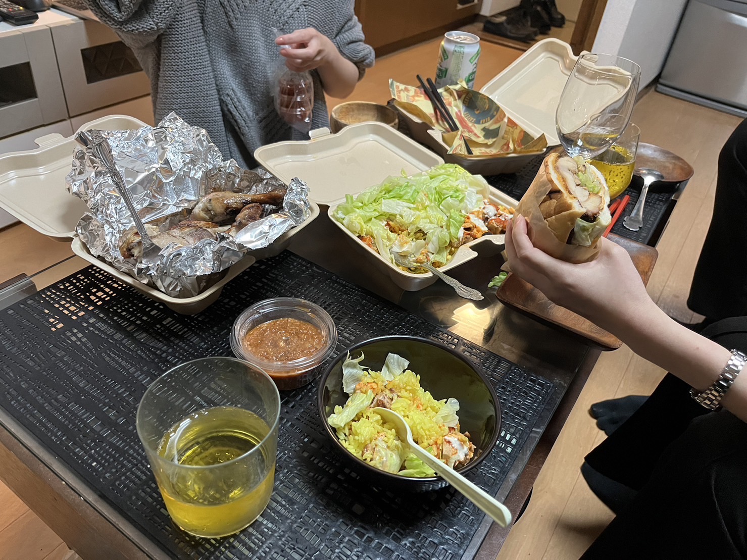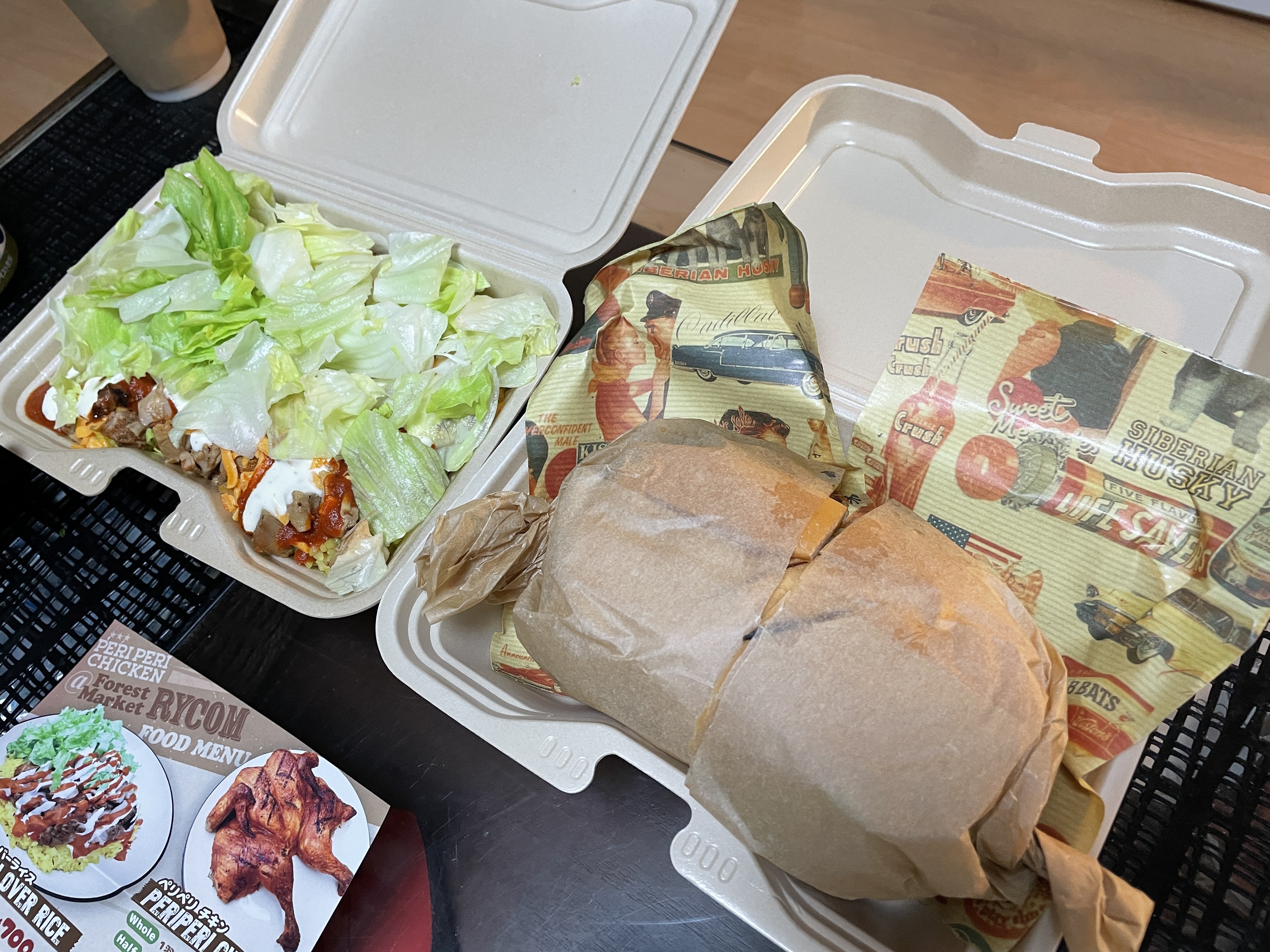 今回は初ペリチキという事で、鉄板メニューの「ペリペリチキン」「チキンオーバーライス」そして私が個人的イチオシの「チキンサンドイッチ」の3品を注文。