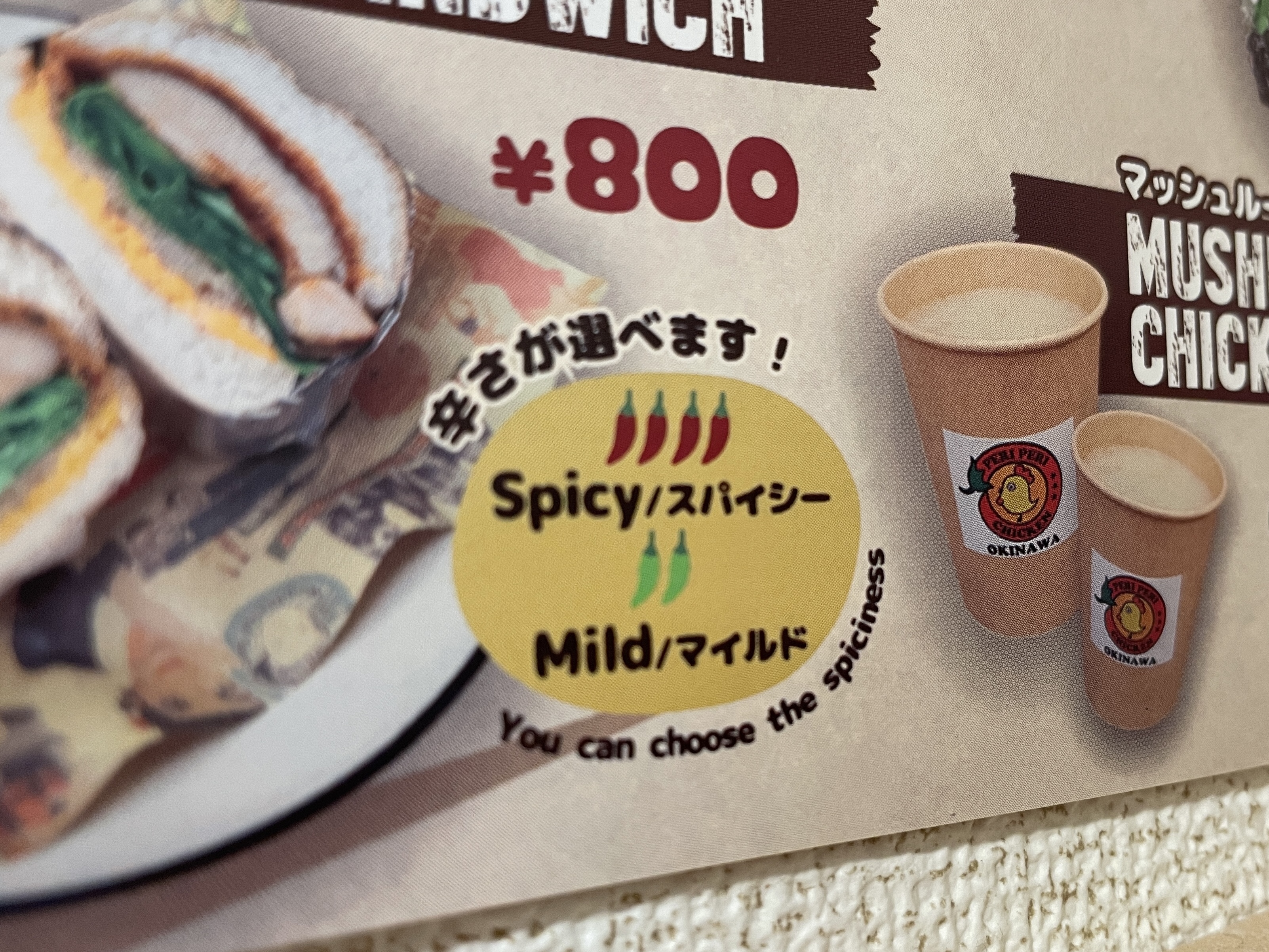 そうです。ペリチキは全てのメインメニュー「スパイシー」か「マイルド」を選べるのです。