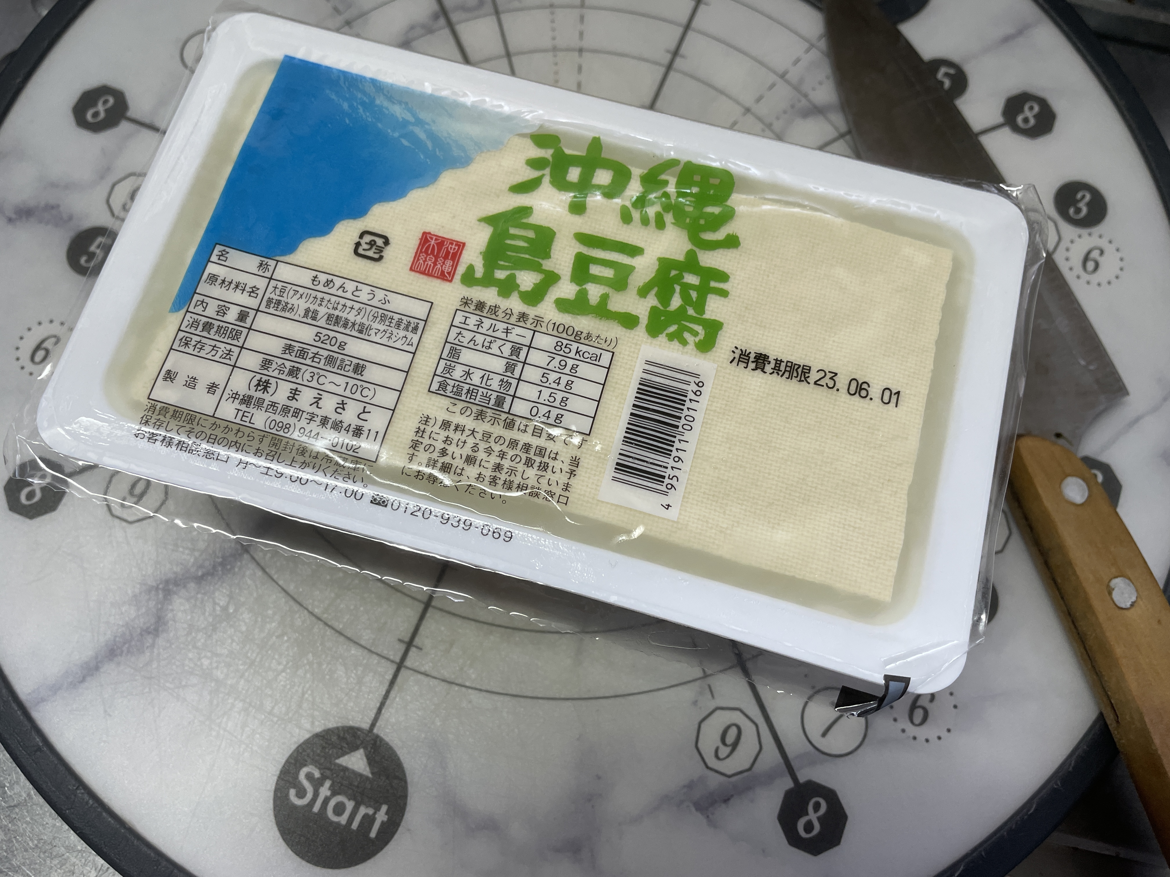 1.沖縄県民おなじみ島豆腐。こちらは親の仇レベルでめちゃくちゃしっかり水抜きしてください