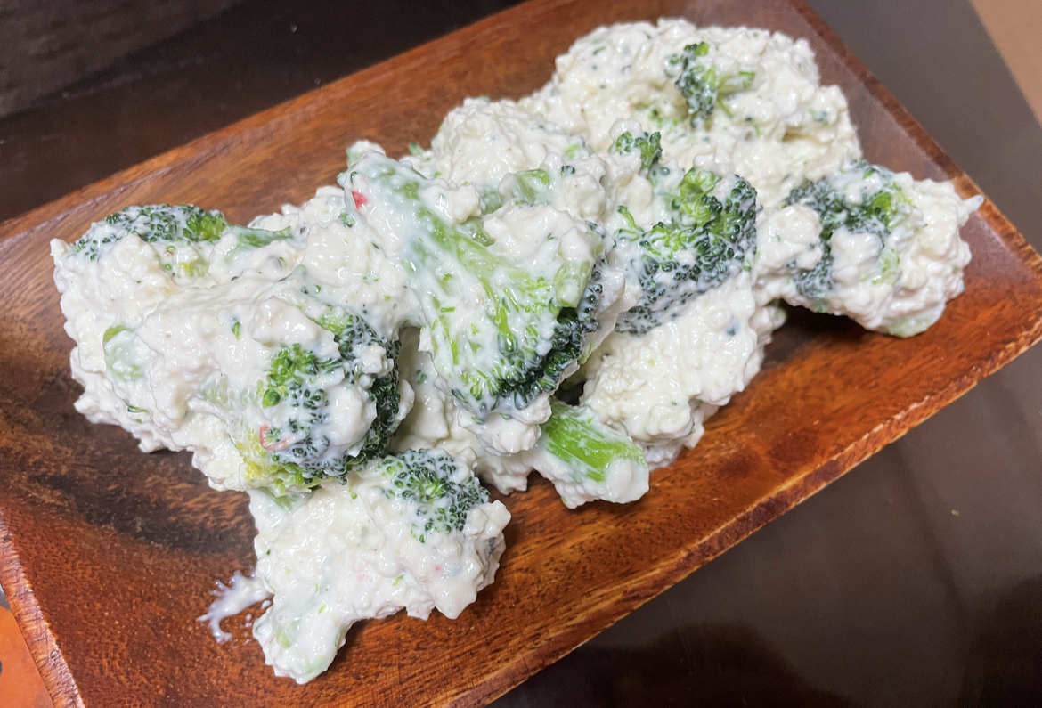 6.余ったこねた豆腐にマヨネーズ&酢&砂糖&塩で豆腐タルタルソースが簡単に作れます。余ったブロッコリーと余り物同士を組み合わせてみました