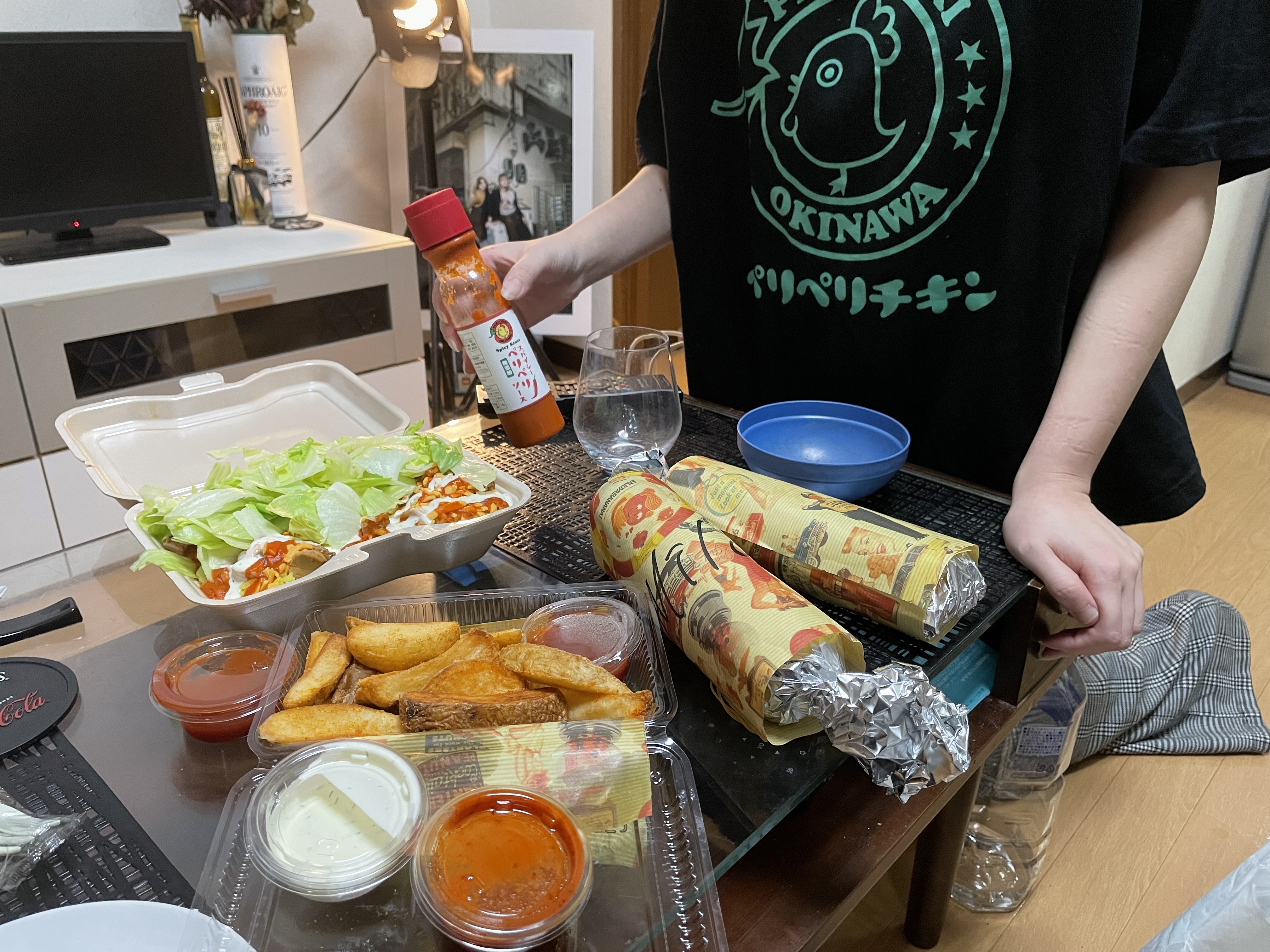 帰宅!友人と一緒にペリチキパーティ開催です!
